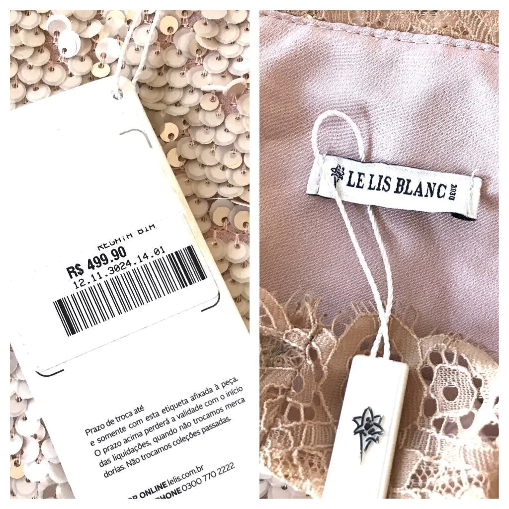Regata da Le Lis Blanc com alcinha, corte reto; com paetês e renda na cor nude.